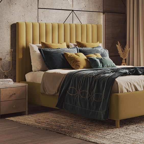 Кровать можно заказать по индивидуальному запросу: выбрать обивку, размер, цвет ножек, тип основания, комплектацию и даже стиль изголовья. Получается не просто мебель — а кровать, идеально подходящая под ваш интерьер и образ жизни.