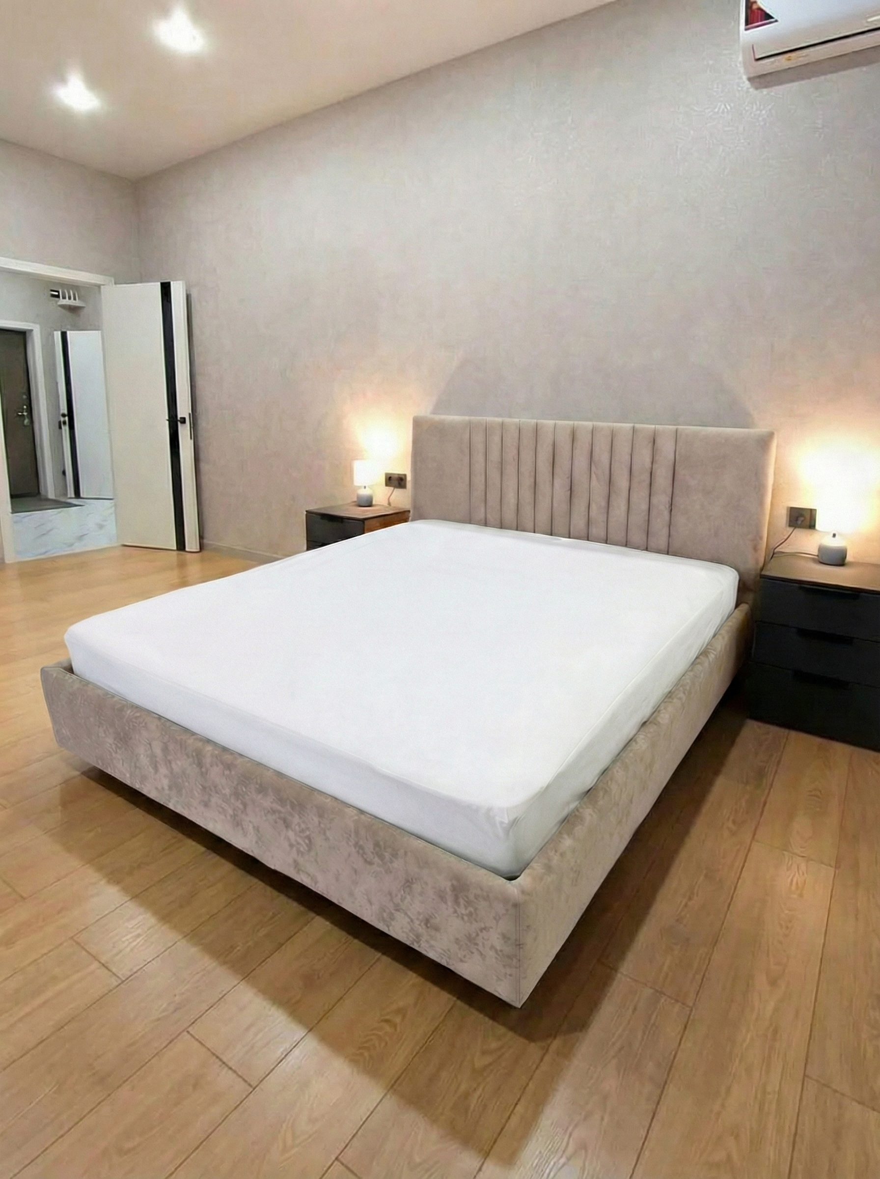 Благодаря уникальному конструктиву кровать будто парит над полом и придаёт интерьеру спальни оригинальность.