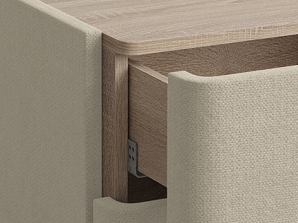 Тумба Sheldon — это идеальное сочетание эстетики и практичности. Ее мягкие линии создают ощущение уюта, делая интерьер более комфортным. Поверхность тумбы выполнена из ЛДСП в цвете «Дуб Сонома», что придает данной модели теплоту и натуральность. А стильные металлические ручки подчеркивают изящность. Два вместительных ящика открываются на направляющих скрытого монтажа и оснащены доводчиком.